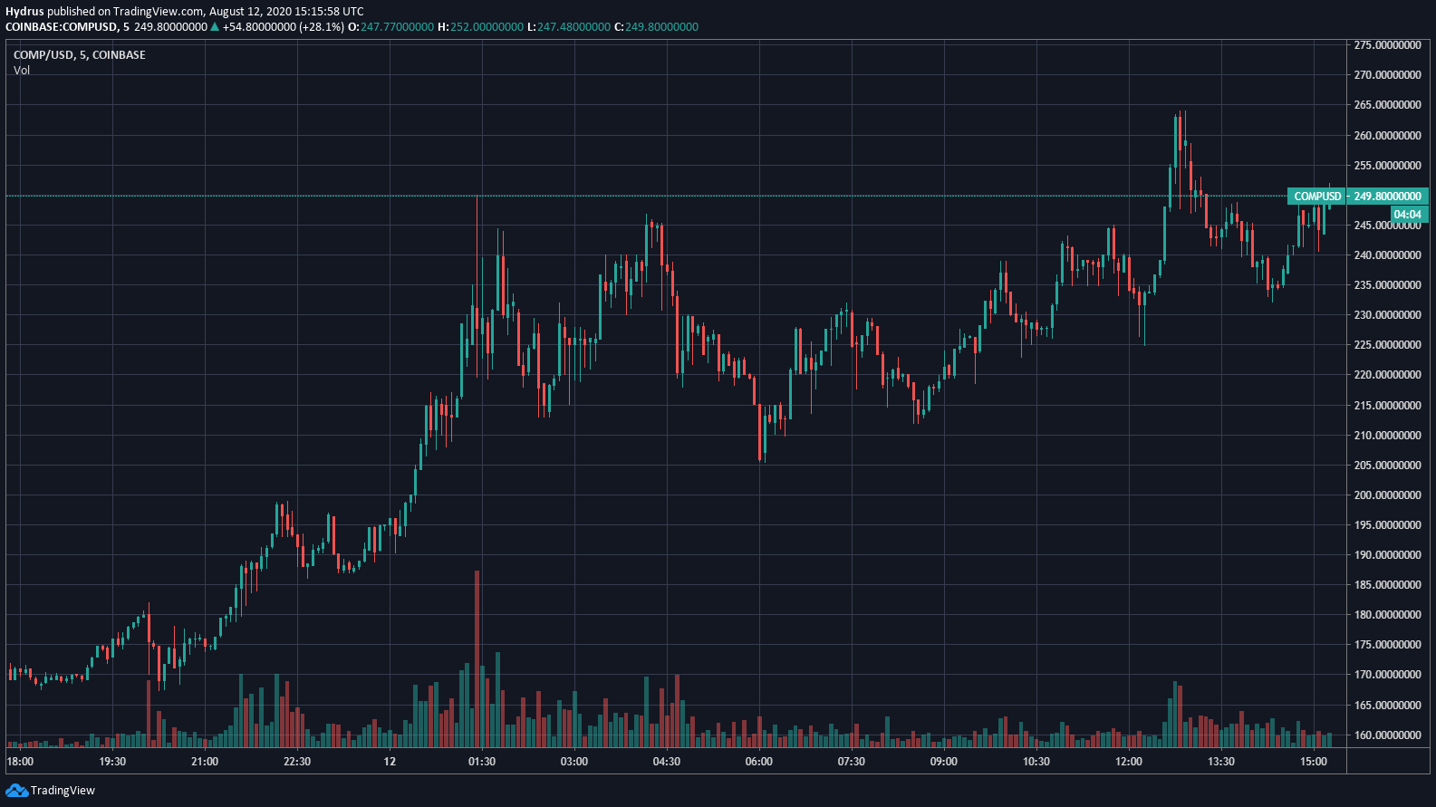 Chart of COMP's price action since the launch of Yam from TradingView.com