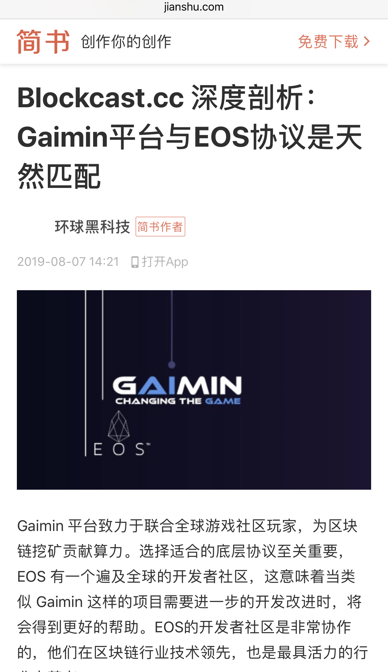 “EOS协议与 Gaimin 的平台社区运营有如很多的共同点, Phil Mesnier 和他的团队也很认可我们的核心解决方案,他非常肯定 EOS协议 将在游戏行业与我们的平台结合的非常好,这将是革命性的,一定会受到游戏社区的欢迎。我个人也一直很欣赏 EOS,我相信Gaimin的系统一定会成为EOS 生态系统的重要组成部分。”Gaimin的CEO Martin Speight对Blockcast的记者说道。