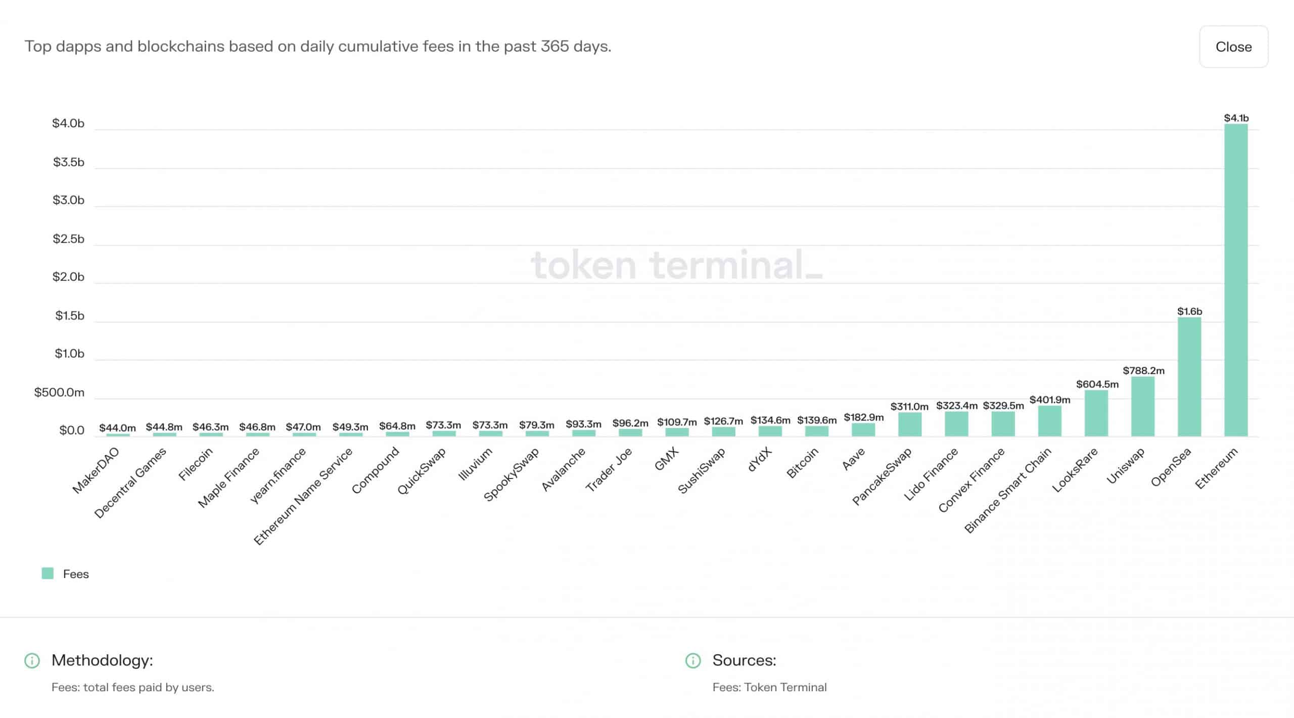 In the crypto space, Uniswap performed exceptionally well in terms of the fees it generated over the past year. According to data provided by the token terminal, Uniswap ranked 3rd in terms of fees generated, outperforming other protocols such as PancakeSwap, LIDO, and BNB chain.